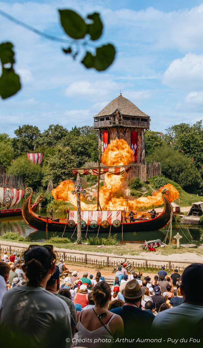 - Visite libre sur la journée : Chaque spectacle est répété plusieurs fois par jour, vous pourrez composer votre journée selon vos envies. Le programme vous sera remis le matin-même à l’accueil ou à télécharger 24 heures avant votre réservation sur le site internet du Puy du Fou.